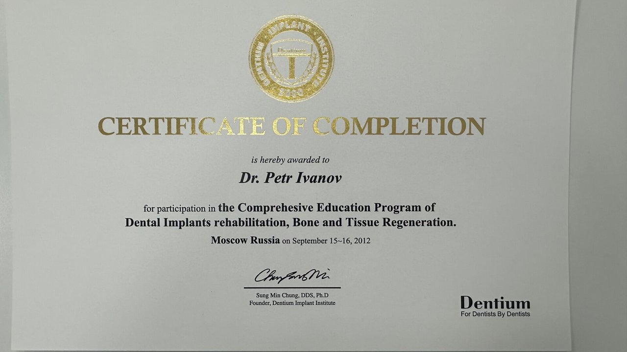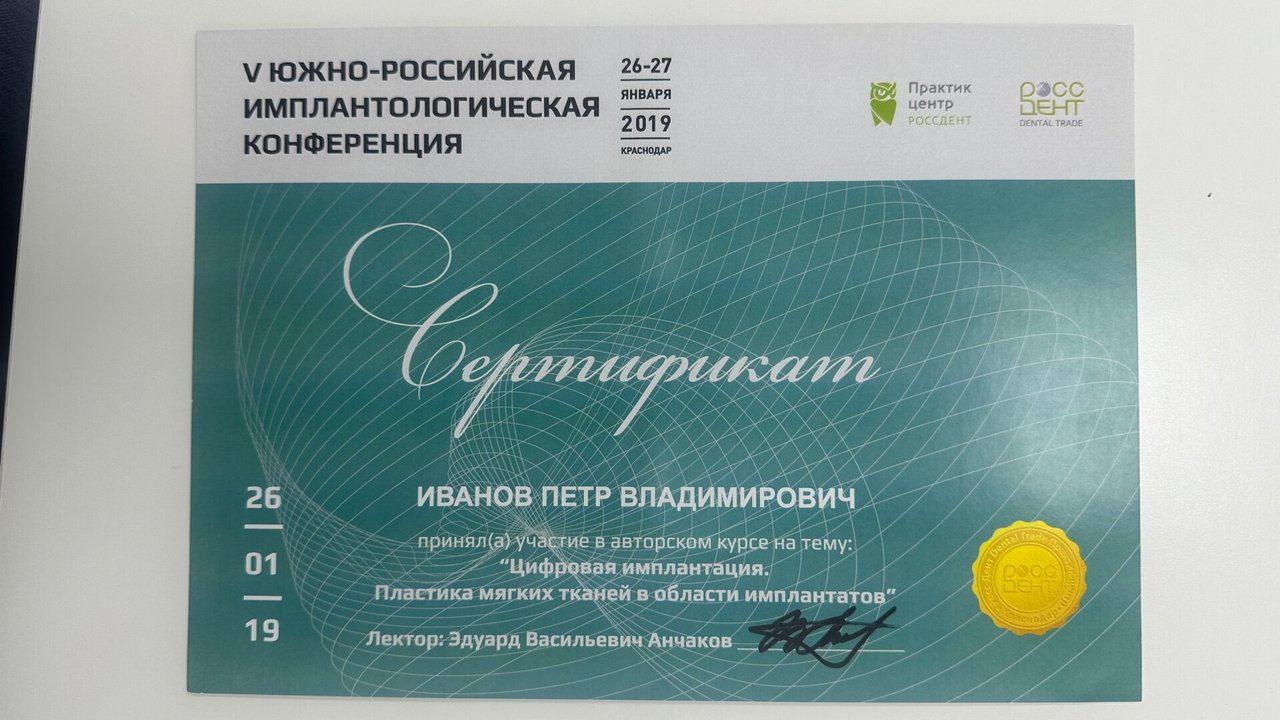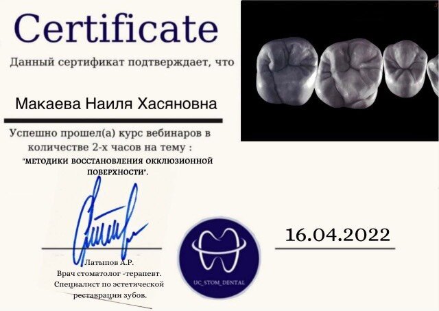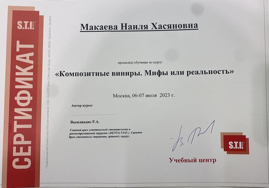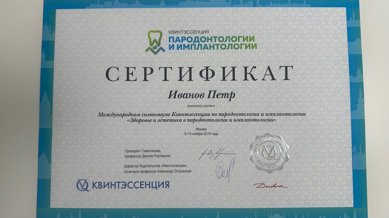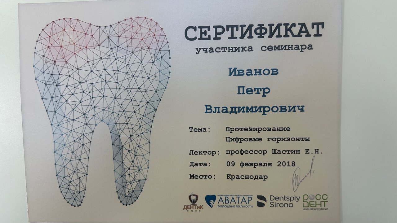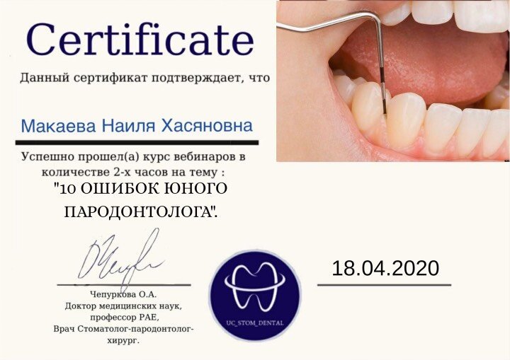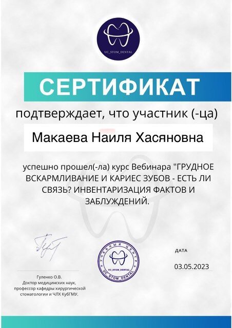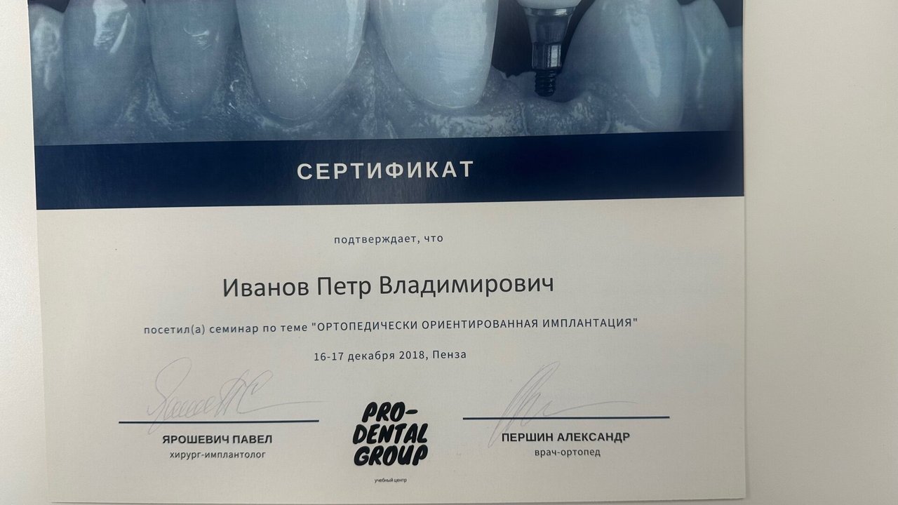 2023-2025 — «Пензенский институт усовершенствования врачей» – филиал федерального государственного бюджетного образовательного учреждения дополнительного профессионального образования «Российская медицинская академия непрерывного профессионального образования» Министерства здравоохранения Российской Федерации, специальность «Врач-стоматолог общей практики»